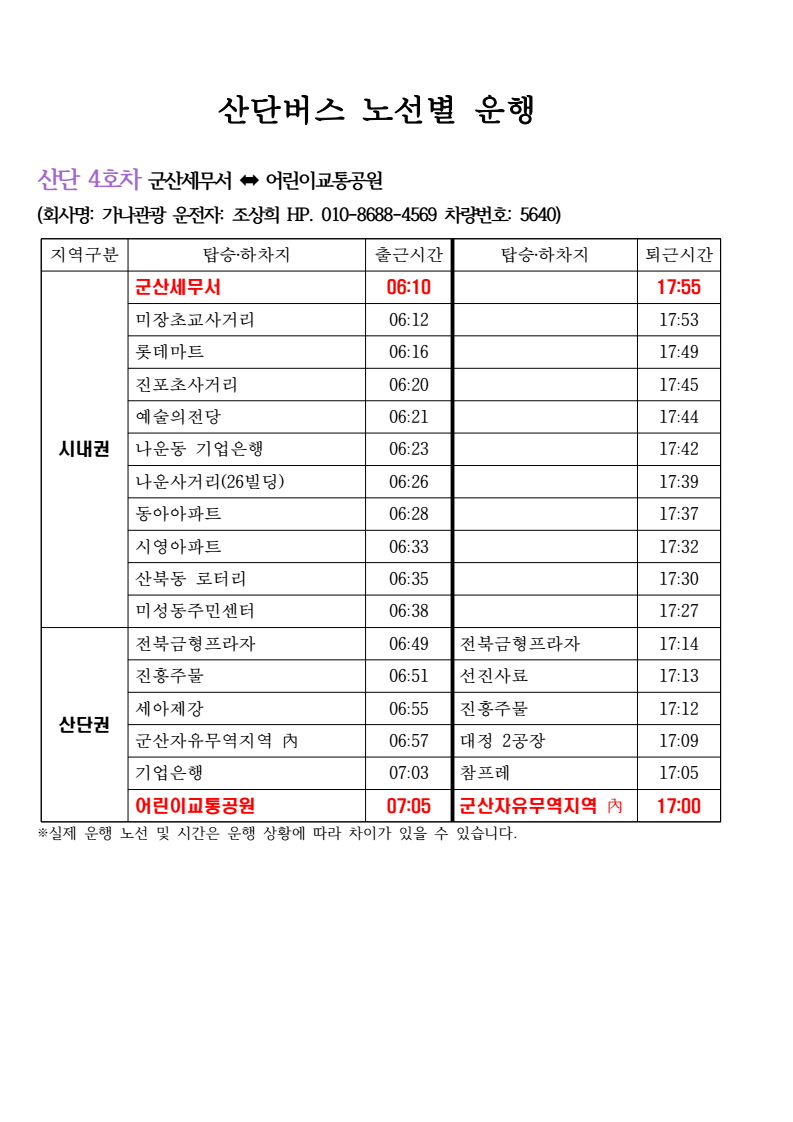 ※ 실제 운행 노선 및 시간은 운행 상황에 따라 차이가 있을 수 있음