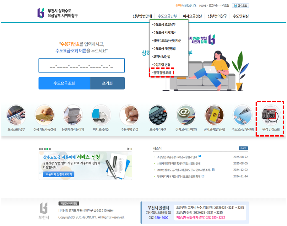 부천시 상하수도 요금납부 사이버 창구 > 원격검침조회