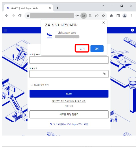 ① 주소창에 표시된 아이콘 Visit Japan Web 설치 클릭