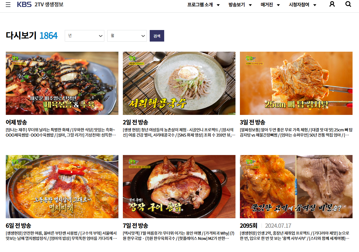 2TV 생생정보 공식홈페이지에서 다시보기 가능