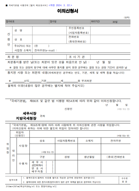 세무서 처분이 위법하거나 부당하다고 생각된다면, 90일 이내에 이의신청서를 제출하세요.