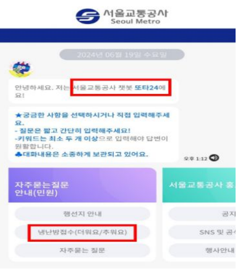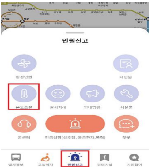 또타지하철 앱에서 ‘민원신고 → 온도조절’ 메뉴를 통해 직접 의견도 전달할 수 있습니다.