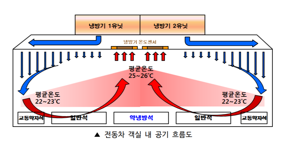 좌석위치에 따라 평균보다 2~4℃, 승객이 많은 경우는 최대 6℃까지 더 낮을 수 있습니다.