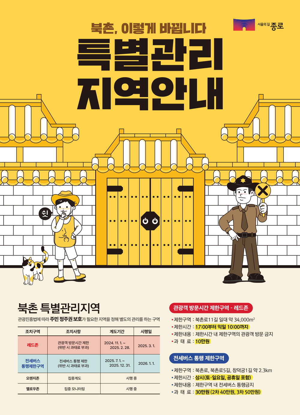 지역 주민과 방문객 모두가 조화롭게 공존할 수 있도록, 북촌 특별관리지역의 운영 방침에 적극 협조해 주세요.