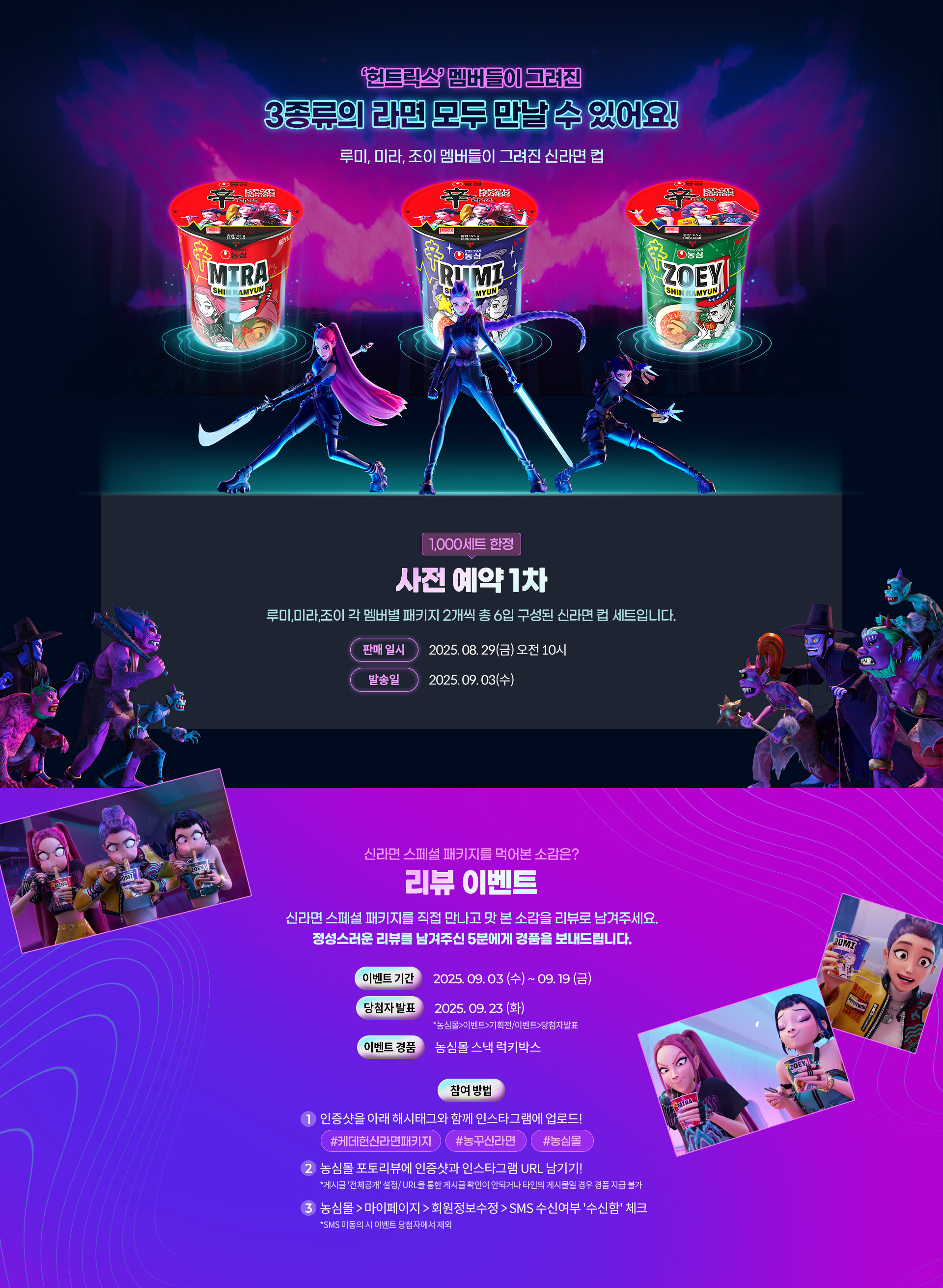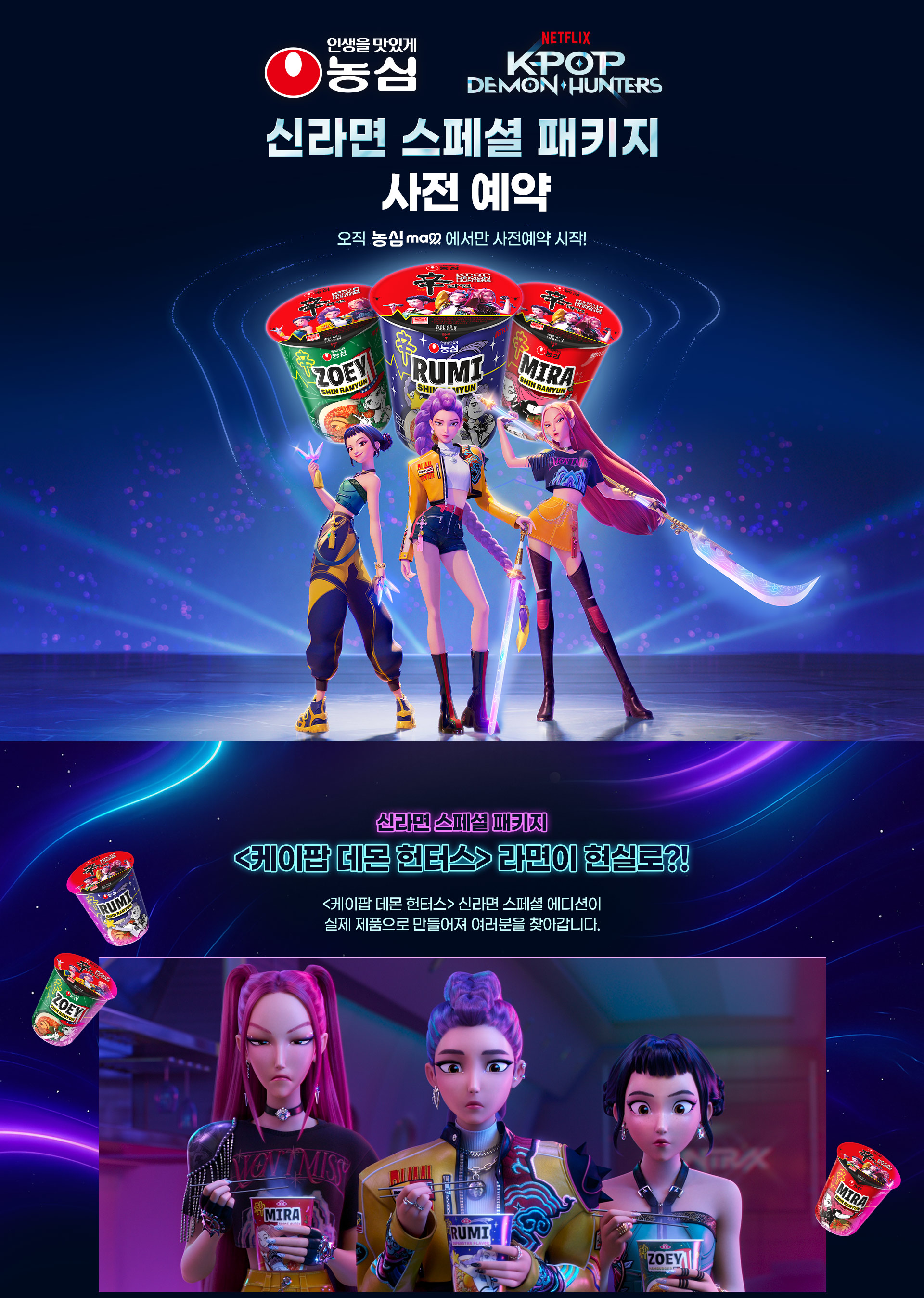 8월 말부터 약 한 달간 전국 대형마트 및 주요 유통 매장에서 신라면·새우깡 등 ‘케이팝 데몬 헌터스’ 캐릭터 콜라보 제품 판촉 행사 진행