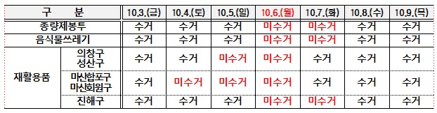 수거 중단일: 10월 6일(월) ~ 10월 7일(화)